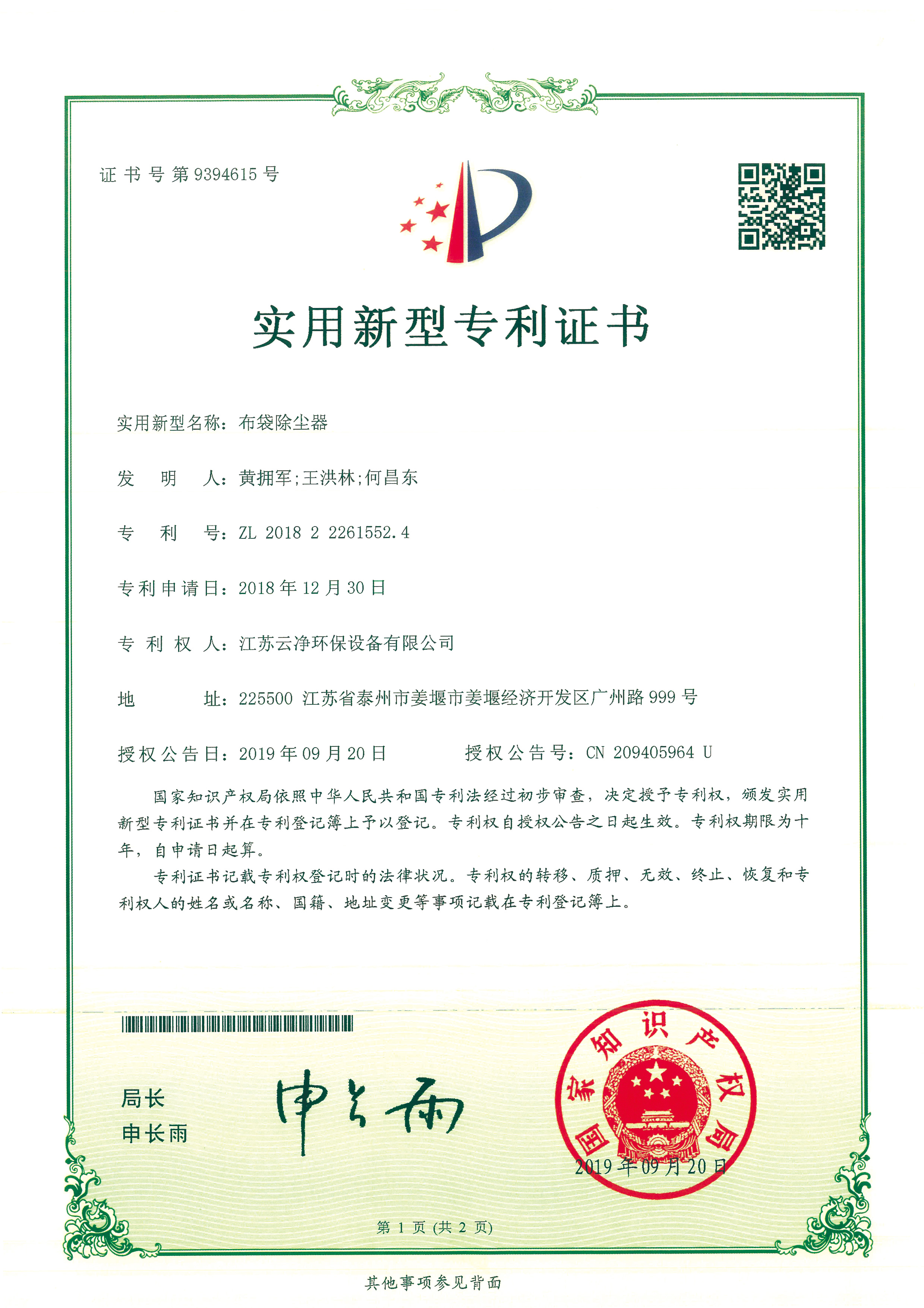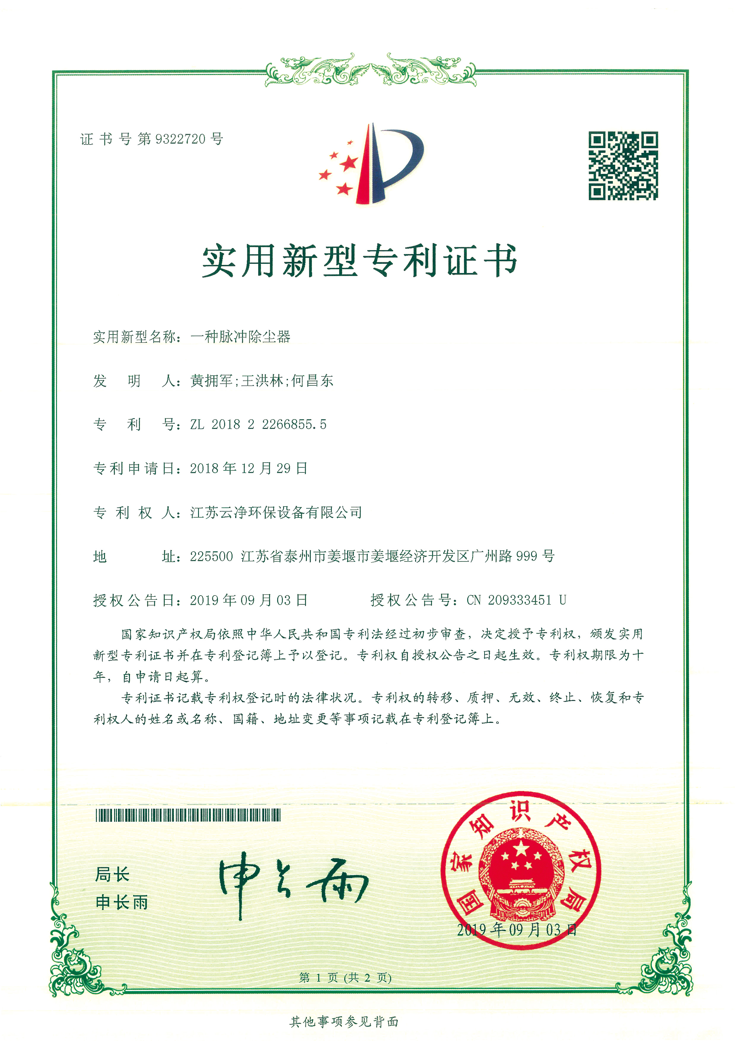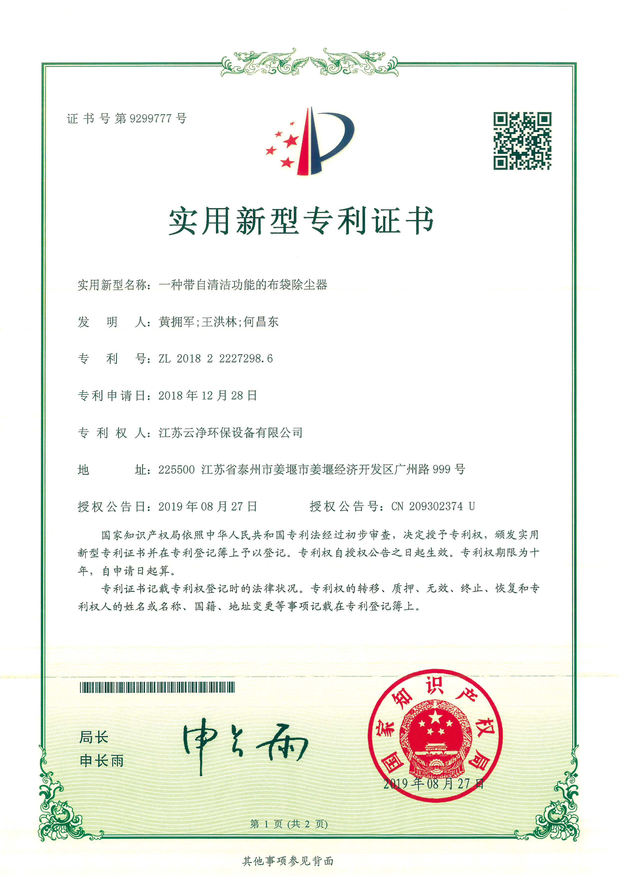 公司先后獲得“江蘇省民營科技企業(yè)”﹑“環(huán)保產(chǎn)業(yè)骨干企業(yè)” 、“重合同守信用AA級企業(yè)” 、通過ISO9001:2015質(zhì)量體系認證、ISO14001:2015環(huán)境管理體系、知識產(chǎn)權(quán)管理體系和ISO45001:2018職業(yè)健康安全管理體系認證,為江蘇省高新技術企業(yè)。多項產(chǎn)品獲得高新技術產(chǎn)品認定,擁有發(fā)明及實用新型專利31件(ZL202020254279.7、ZL202020254287.1、ZL202020288783.9等),現(xiàn)有各類除塵設備﹑脫硫設備﹑超凈排放設備八大類近200個規(guī)格產(chǎn)品,特別是開發(fā)出國內(nèi)的有色冶煉系統(tǒng)收砷布袋除塵器,該設備開創(chuàng)了收砷布袋除塵器先例,本體使用壽命可達十年之久,是國內(nèi)其他設備無法比擬的。公司具備良好的產(chǎn)品研發(fā)能力,通過與相關科研院所技術合作開發(fā)了高效除塵器、燒結(jié)板除塵器、濾筒除塵器、脫硫濕電超凈排放一體化設備、中低溫脫硝設備、等離子體除臭設備等,產(chǎn)品受到用戶的一致好評。
