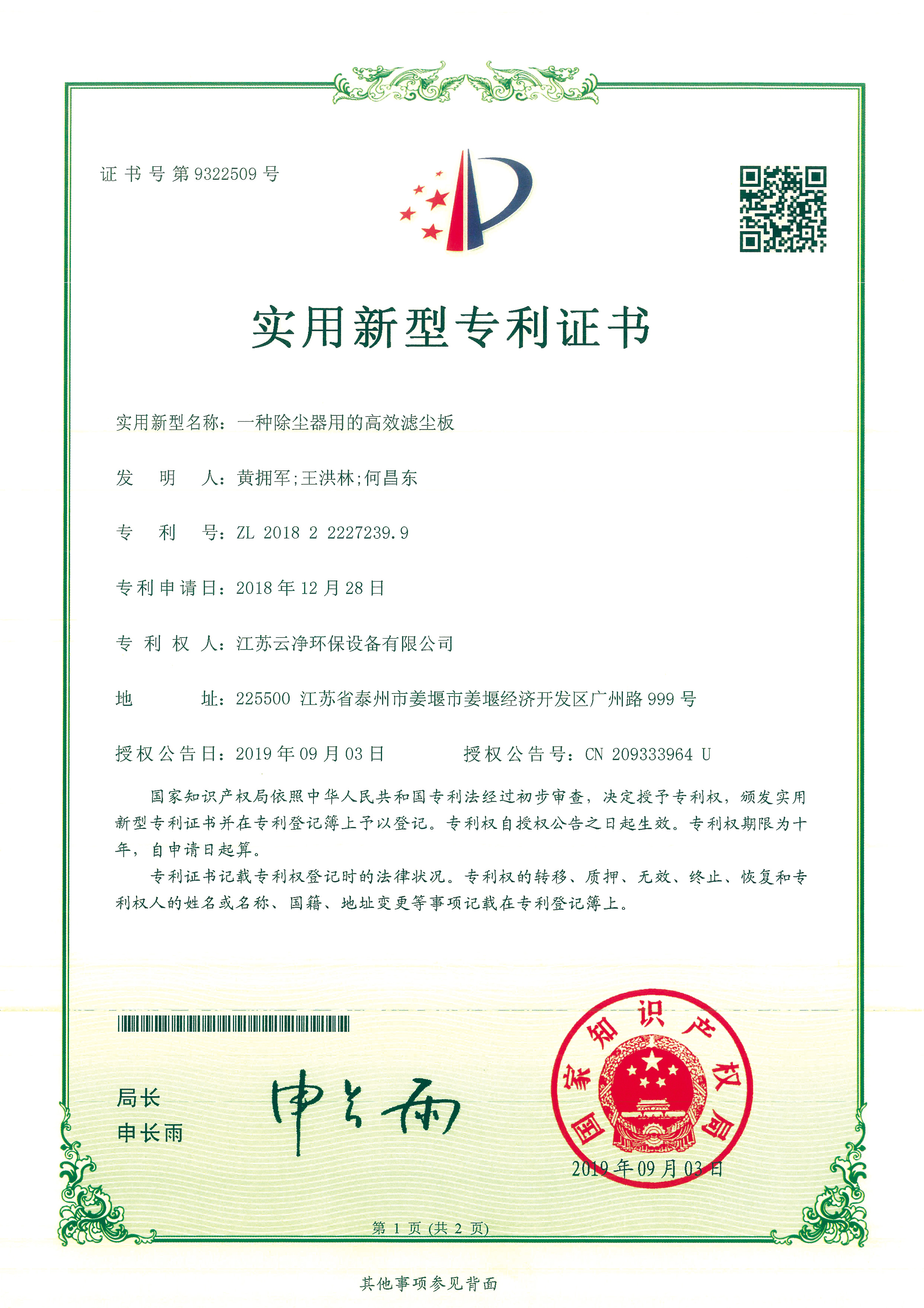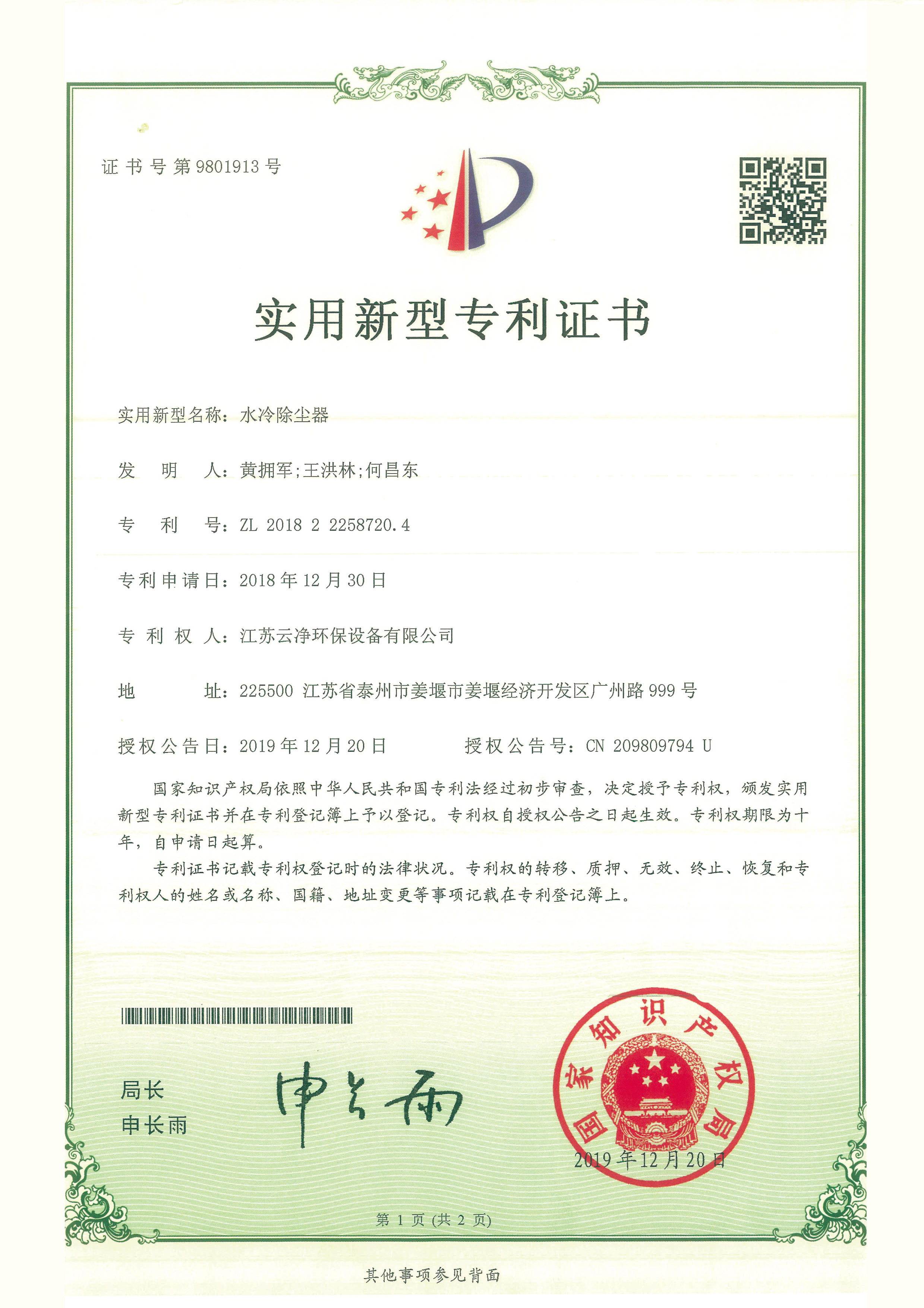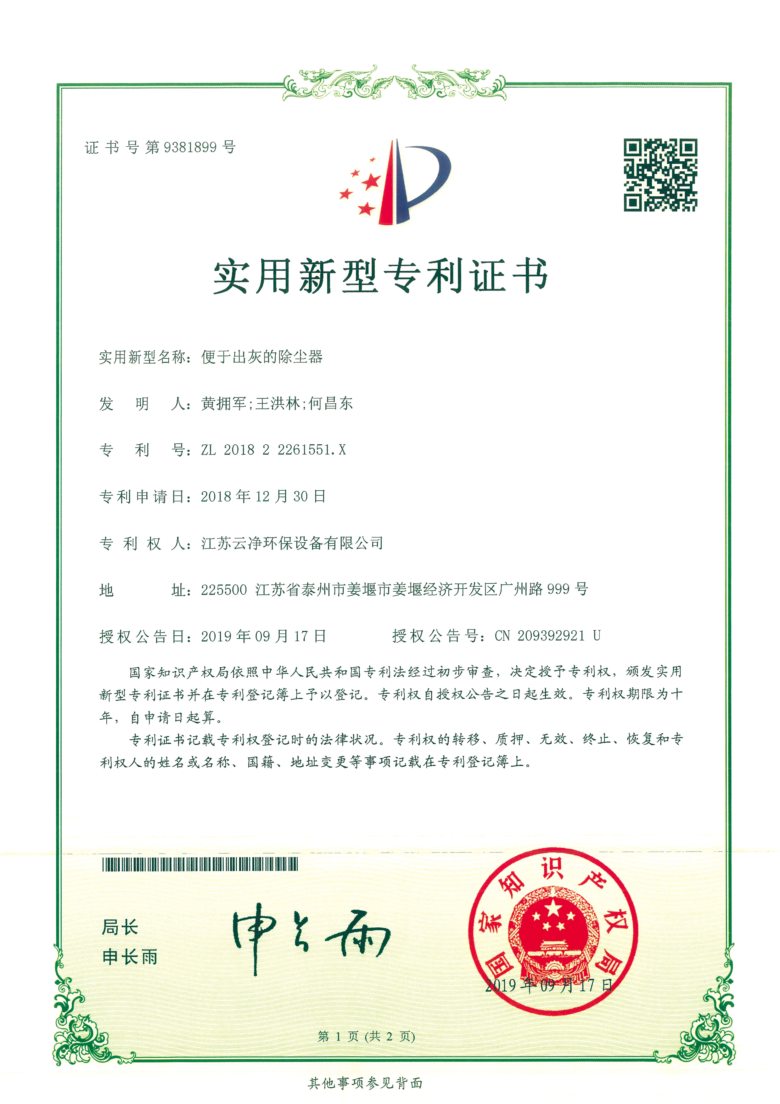 公司先后獲得“江蘇省民營科技企業(yè)”﹑“環(huán)保產(chǎn)業(yè)骨干企業(yè)” 、“重合同守信用AA級企業(yè)” 、通過ISO9001:2015質(zhì)量體系認證、ISO14001:2015環(huán)境管理體系、知識產(chǎn)權(quán)管理體系和ISO45001:2018職業(yè)健康安全管理體系認證,為江蘇省高新技術企業(yè)。多項產(chǎn)品獲得高新技術產(chǎn)品認定,擁有發(fā)明及實用新型專利31件(ZL202020254279.7、ZL202020254287.1、ZL202020288783.9等),現(xiàn)有各類除塵設備﹑脫硫設備﹑超凈排放設備八大類近200個規(guī)格產(chǎn)品,特別是開發(fā)出國內(nèi)的有色冶煉系統(tǒng)收砷布袋除塵器,該設備開創(chuàng)了收砷布袋除塵器先例,本體使用壽命可達十年之久,是國內(nèi)其他設備無法比擬的。公司具備良好的產(chǎn)品研發(fā)能力,通過與相關科研院所技術合作開發(fā)了高效除塵器、燒結(jié)板除塵器、濾筒除塵器、脫硫濕電超凈排放一體化設備、中低溫脫硝設備、等離子體除臭設備等,產(chǎn)品受到用戶的一致好評。